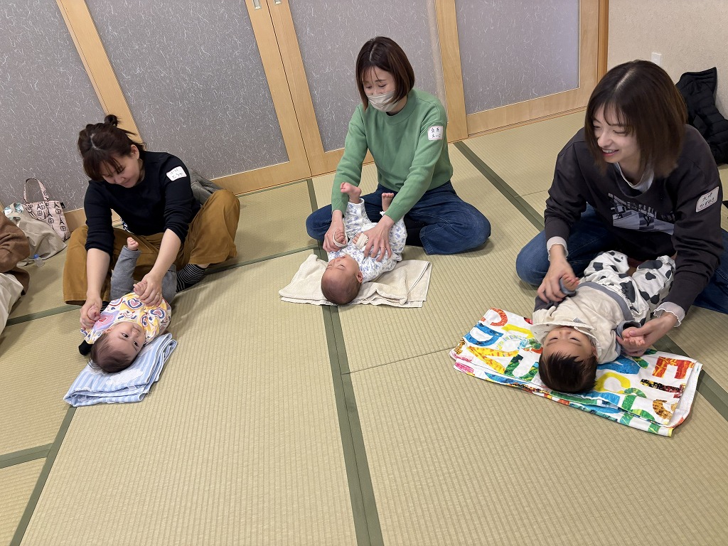 ベビーマッサージでは、お家の方に優しくマッサージをしてもらい、赤ちゃん達はゆったりと気持ちよさそうな表情を見せてくれましたよ♫