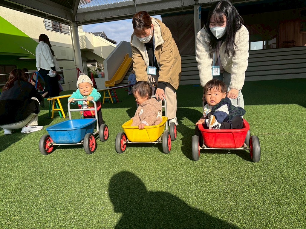 また、小さなお友だちが3人(0歳児のお友達)で集まってお話しているようでその姿がとても微笑ましかったです。