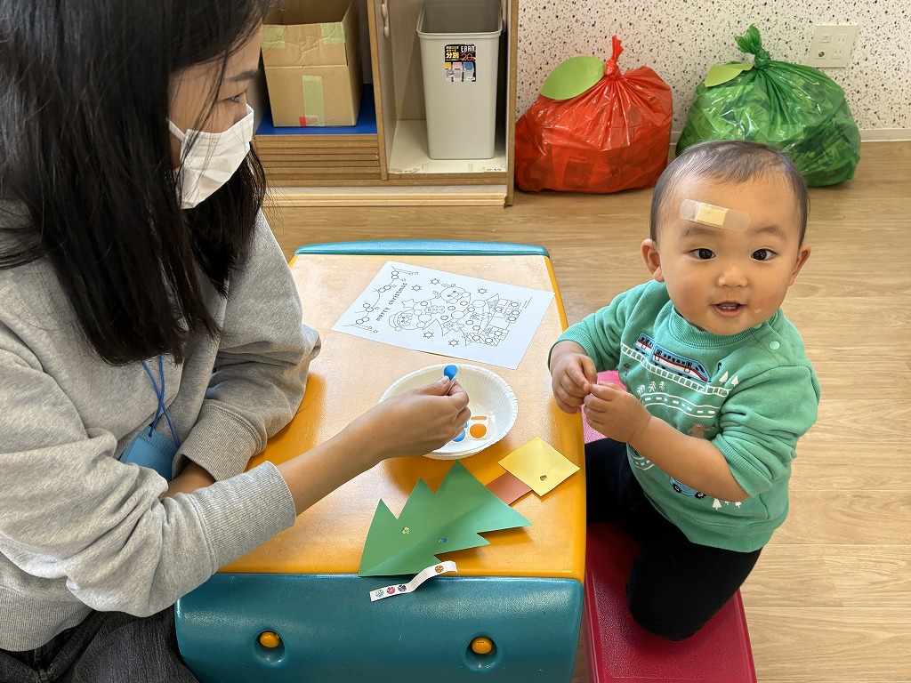 お部屋の中では滑り台をしたり、クリスマスツリーの飾り付けもしてくれましたよ♥