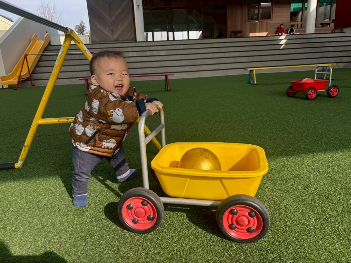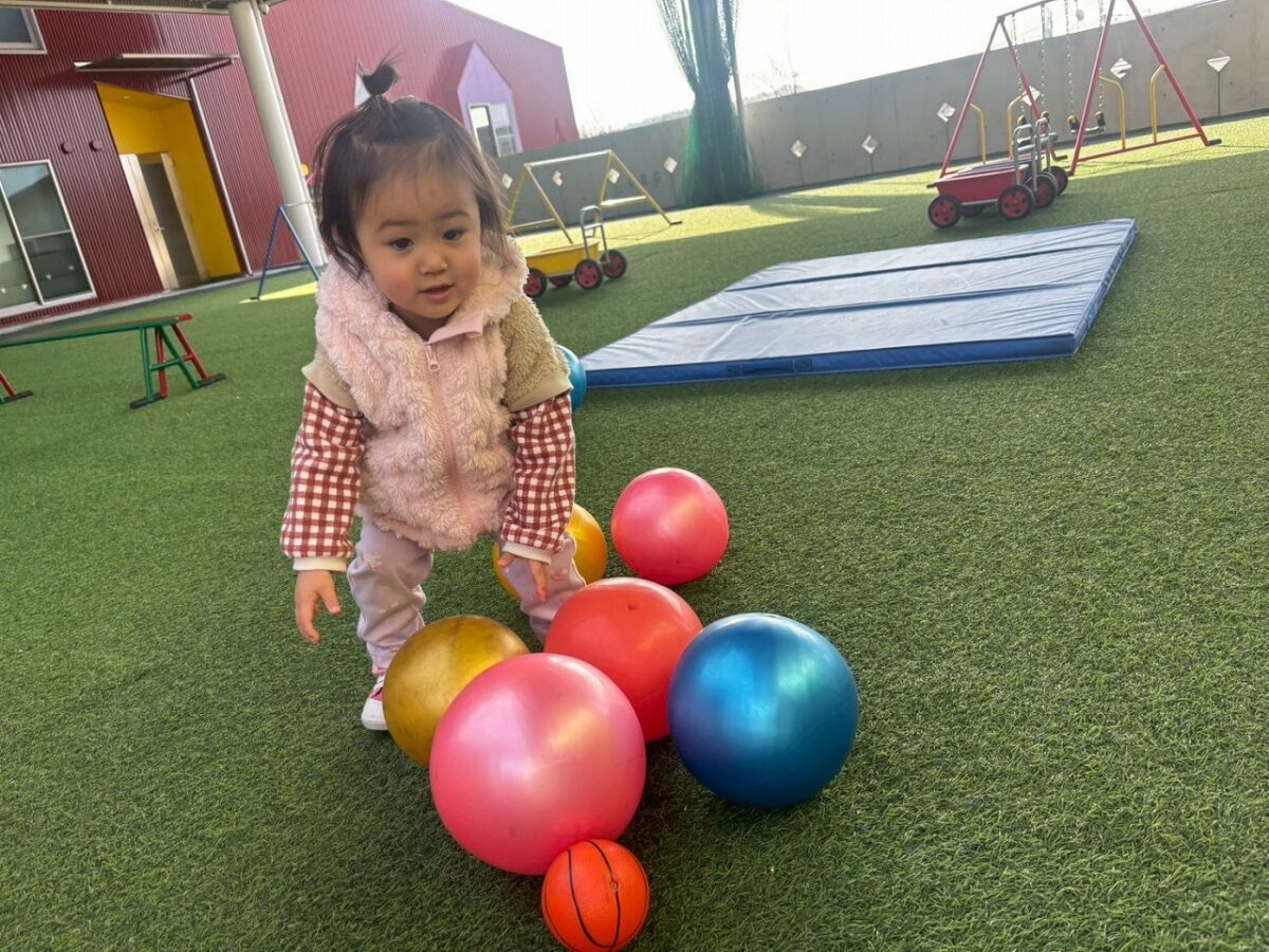 園庭やソラシドームでは押し車を押したり・乗ったり🎶ボールを追いかけたり、お友達にボールを渡してくれる優しい姿も見られました❤️