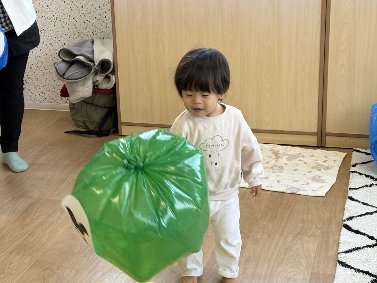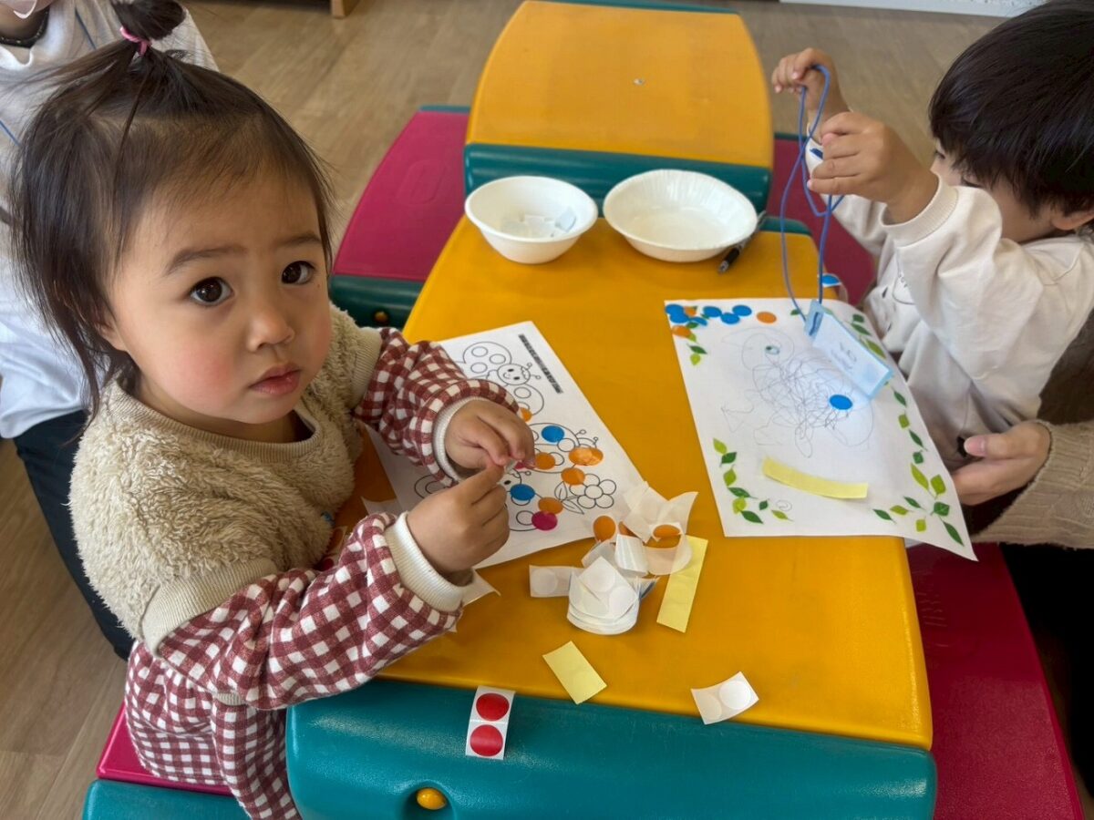 お部屋の中ではだるまさん🙄のふわふわ風船(柔らかくて握りやすいので人気でしたね)やシール貼りをして遊びました🎶小さいな指でなかなか取れないシールに何度も挑戦していましたね。
