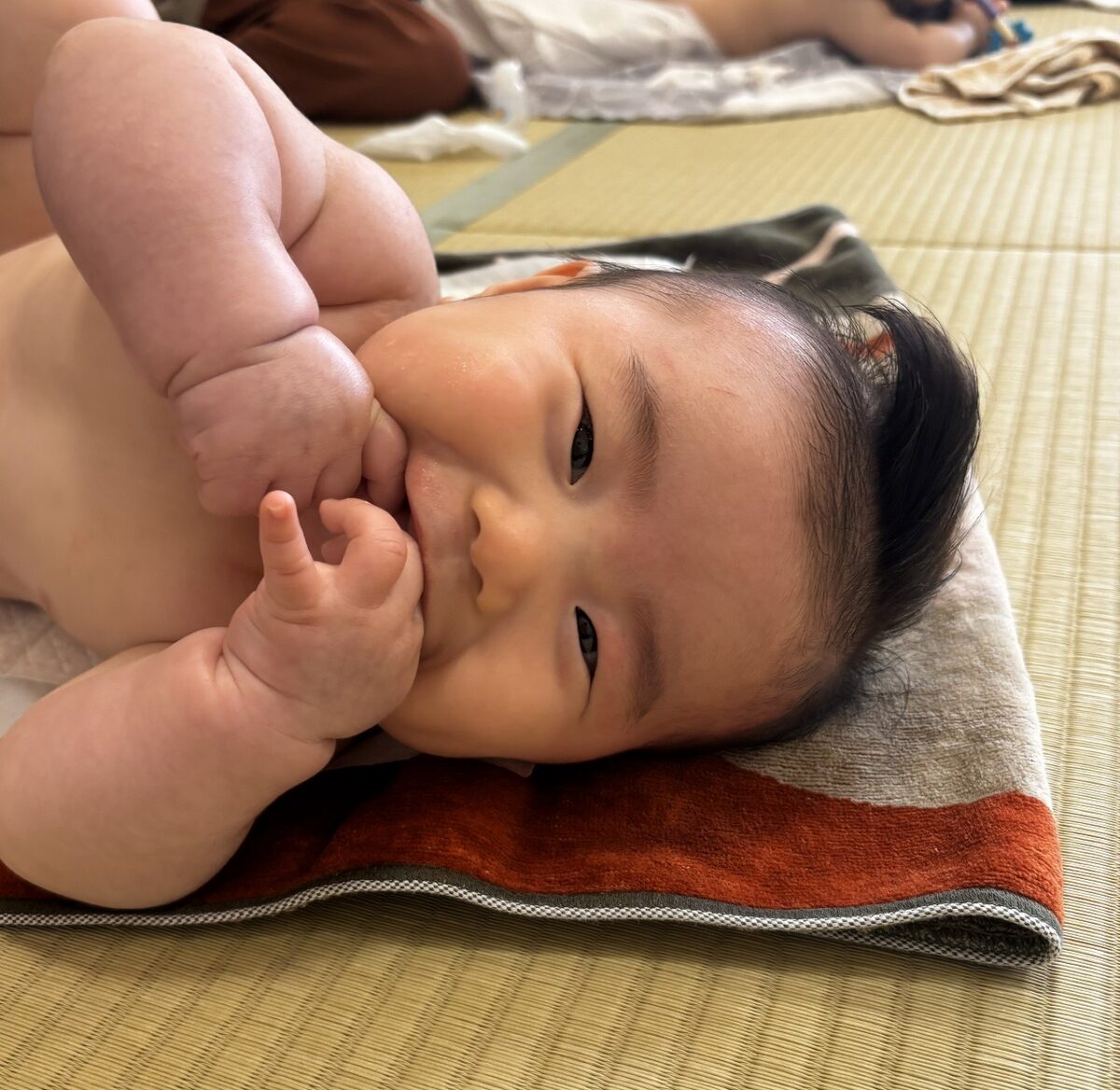 ベビーマッサージでは、お家の方とたくさん触れ合い、赤ちゃんたちはとても気持ち良さそうな表情を見せてくれましたよ!