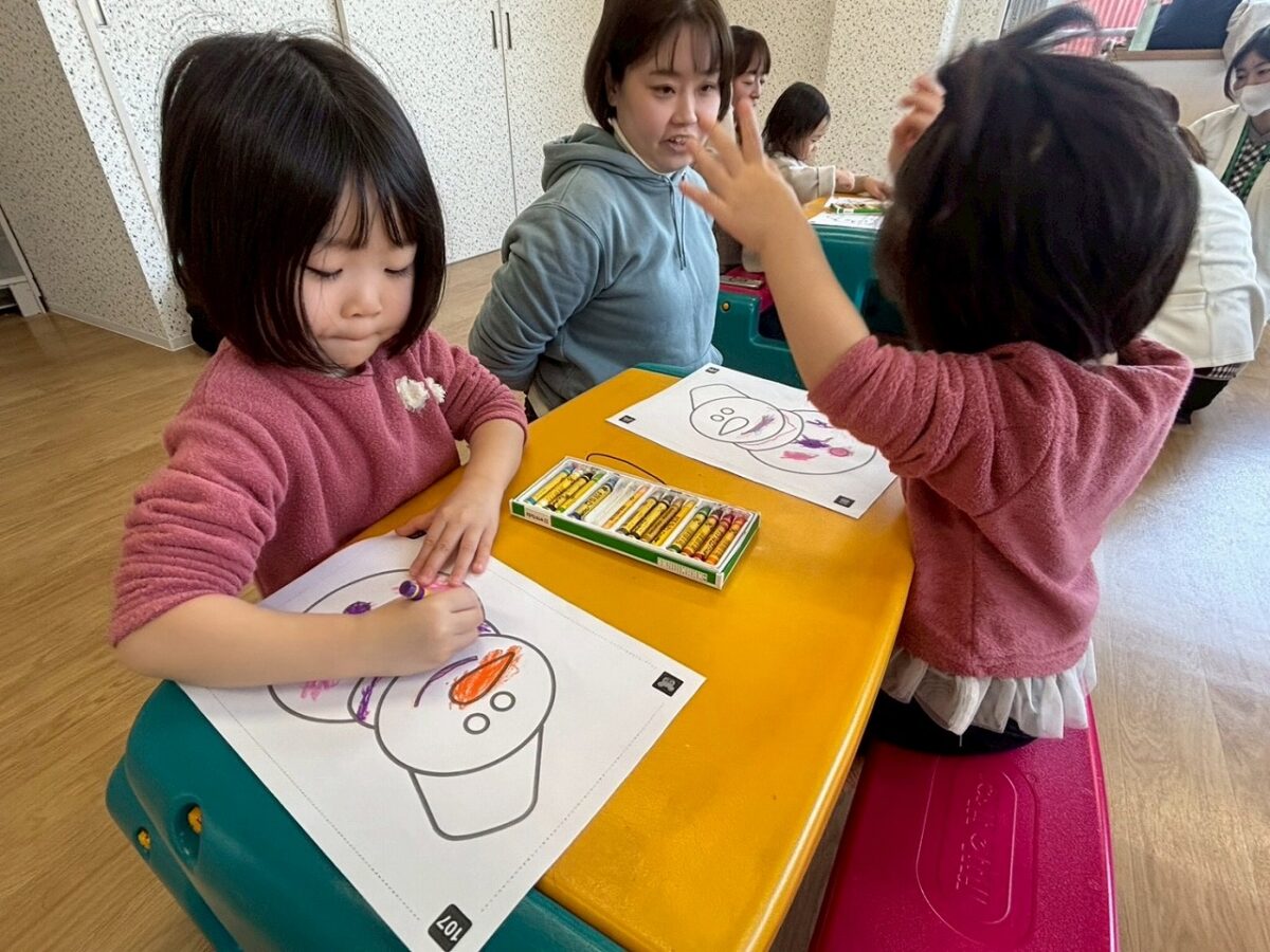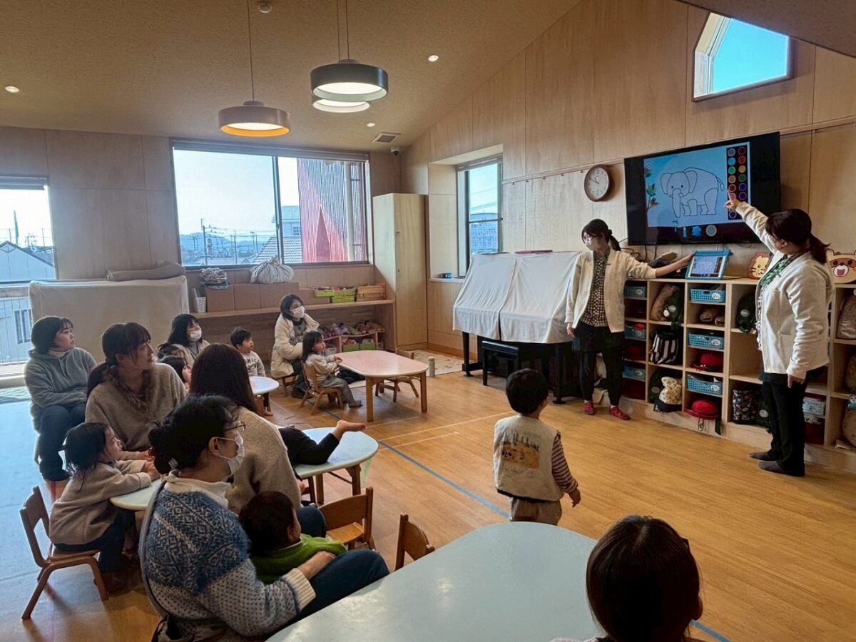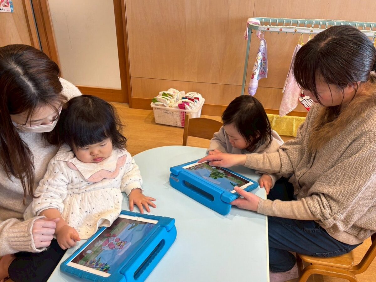 季節の歌を歌い、ゆきだるまの絵本を見た後、iPadを使ったKitS(ICT教材)体験を行いました⛄