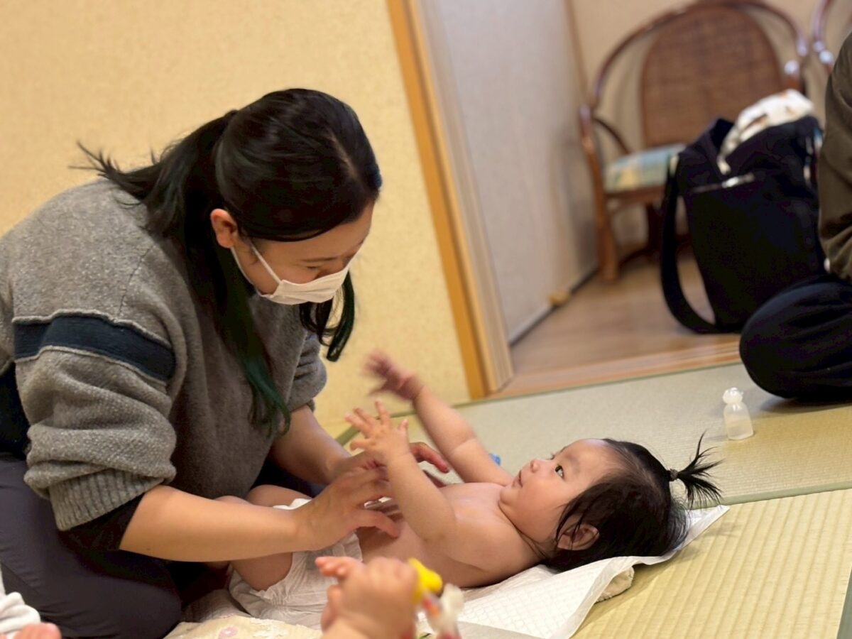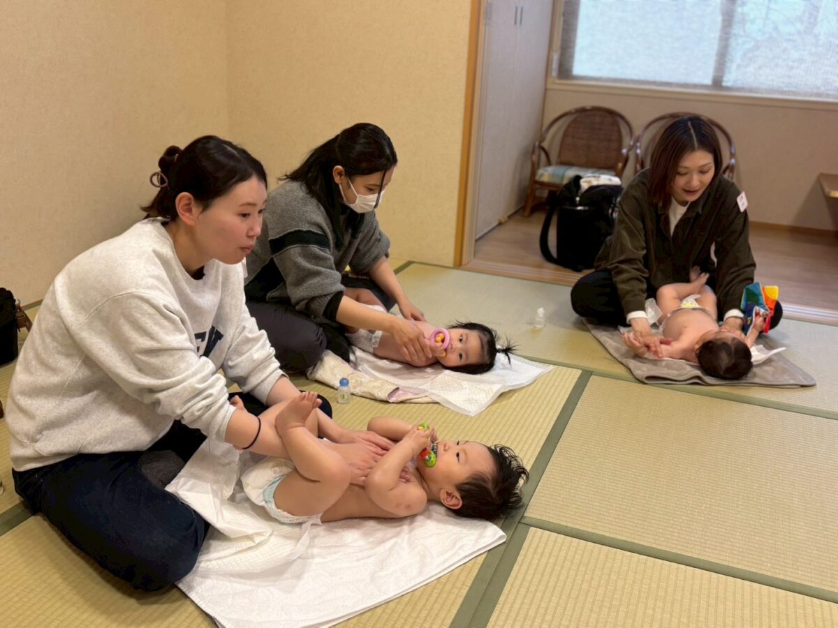 今年度最後のベビー広場がありました。突然の雨となりましたが9組の親子の方にご参加いただきました。キャベツの中からのパネルシアターと絵本を見ましたが、興味津々のお友達が前まで来て見てくれていましたよ。自己紹介の時間はみなさんのお話で大盛り上がりでした。ベビーマッサージでは、お母さんと目を合わせて笑顔になる赤ちゃんたちの表情がとても可愛かったです。今年度あそびえベビー広場にお越しいただいた、親子の皆さんありがとうございました。また来年度もお待ちしております。